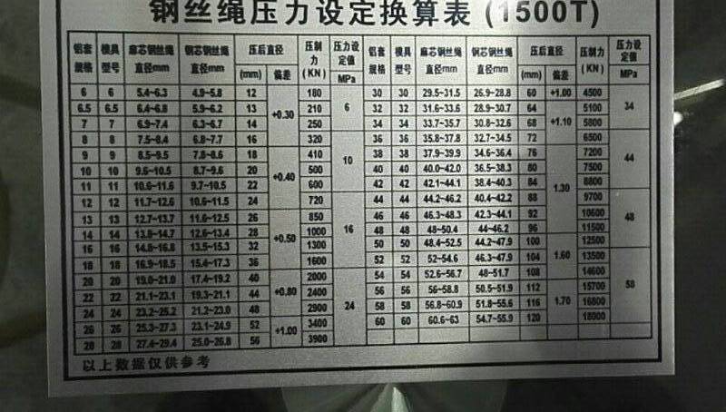 首先模具和鋁套型號是必須對應(yīng)的,比如6mm鋁套就用6#壓套機模具,8mm鋁套就用8#模具,而鋼絲繩的尺寸不一定是整數(shù),廠家配的模具正常都是偶數(shù)配,壓到?jīng)]對應(yīng)尺寸的鋼絲繩,這點不用擔(dān)心,模具都是有壓制范圍的,正常用1mm的上下范圍,比如15mm的鋼絲繩,可以用14mm或16mm的模具,總之最好的分別方法就是,不管鋼絲繩的尺寸是多少,找數(shù)值離得最近的模具就壓就可以了。還有一個重點,剛剛說的情況都是麻芯的鋼絲繩,而鋼芯的鋼絲繩正常都是比麻芯的鋼絲繩所用模具大一個型號。參數(shù)這樣的方法,客戶在使用鋼絲繩壓套機模具時就不會不知道如果選擇了。